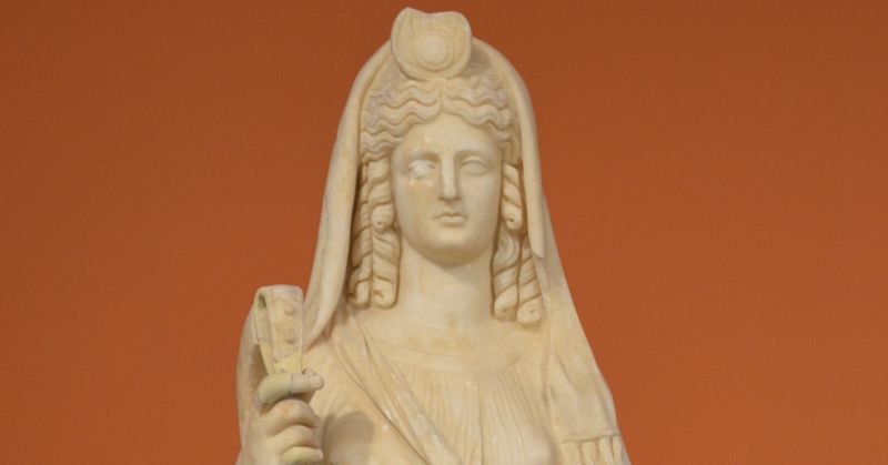 Detail of Persephone/Isis, Statue group of Persephone (as Isis) and Pluto (as Serapis), from the Sanctuary of the Egyptian Gods at Gortyna, mid-2nd century AD, Heraklion Archaeological Museum” by Following Hadrian is marked with CC BY-SA 2.0.