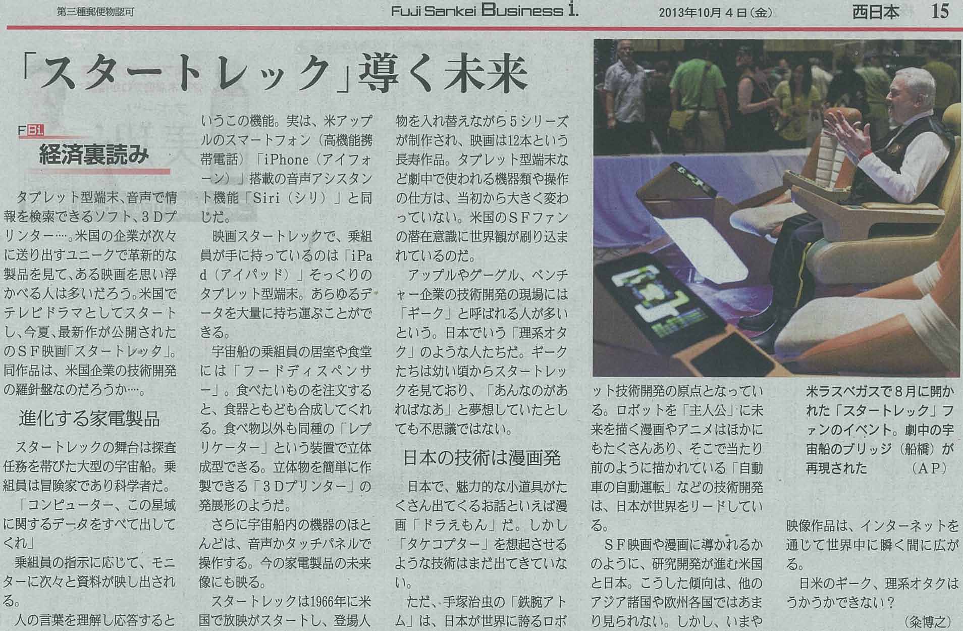フジサンケイビジネス1(20131004)の記事